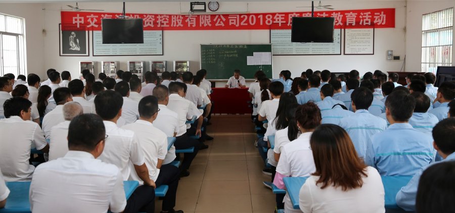 7月26日,按照黨風(fēng)廉政宣教月活動統(tǒng)一部署,中交海投黨委組織開展2018年度廉潔警示教育活動。公司黨委委員、副總經(jīng)理龔海參加學(xué)習(xí)教育并代表公司黨委提出廉潔從業(yè)紀(jì)律要求,黨委委員、副總經(jīng)理蔡建民,總經(jīng)理助理蘇崇劼、李衍旺,各單位領(lǐng)導(dǎo)班子、全體黨員、“管錢、管人、管物”三管人員等共186人參加學(xué)習(xí)教育。