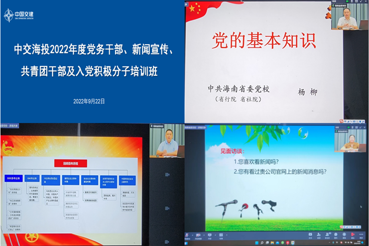 為深入學(xué)習(xí)貫徹習(xí)近平新時(shí)代中國(guó)特色社會(huì)主義思想,進(jìn)一步提高公司黨務(wù)工作、新聞宣傳工作、團(tuán)青工作水平,充分發(fā)揮各級(jí)黨組織的先鋒模范作用,9月22日,公司舉辦2022年度黨務(wù)干部、新聞宣傳、共青團(tuán)干部及入黨積極分子培訓(xùn)班。中交海投黨委副書(shū)記、紀(jì)委書(shū)記、工會(huì)主席楊凱出席開(kāi)班儀式并發(fā)表講話(huà)。
